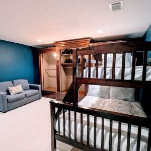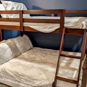 The master of all master suites, the Royal Suite boasts its own private living room and an adjoining children’s room with a twin-over-full bunk bed and a pull-out twin trundle. The suite also has the largest bathroom you will likely ever find, walk-in closets, and private office desk area. This configuration is perfect for families seeking extra space and comfort.